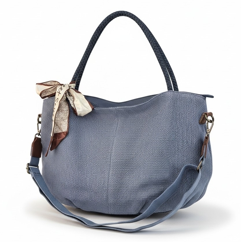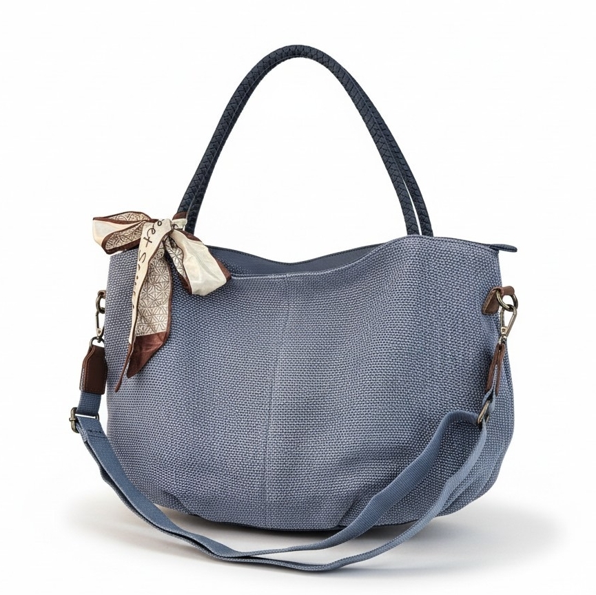 Duża torebka na ramię Daily Scarf niebieska to fason dla kobiet stawiających na pojemność i porządek. Model wyróżnia się ozdobną apaszką przy rączce. Wewnątrz kieszeń na suwak, która dzieli komorę główną na dwie części. Dodatkowe mniejsze przegródki w podszewce pomieszczą telefon i klucze. Duża torebka na ramię Daily Scarf pomarańczowa ma płaskie dno oraz dopinany, długi pasek.
