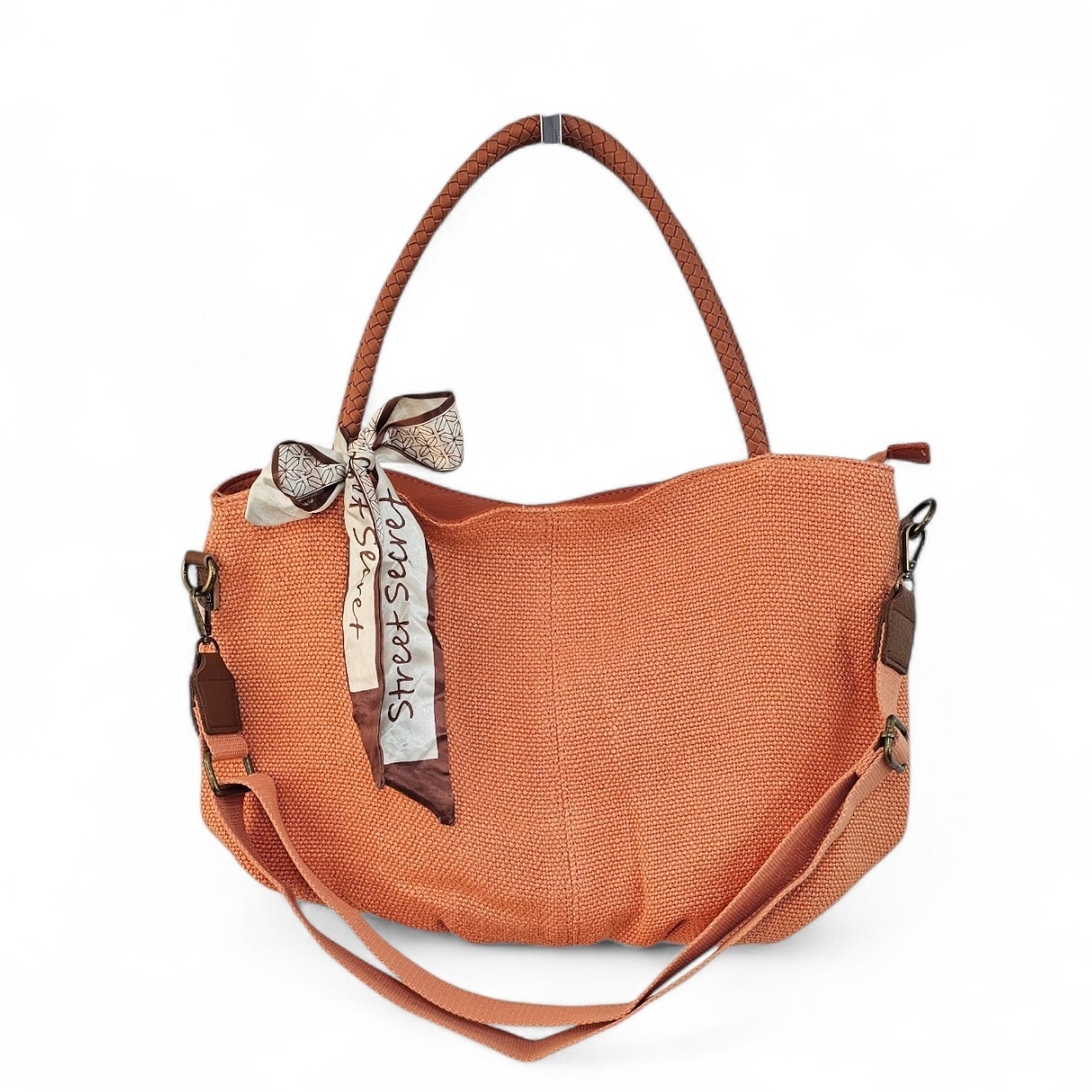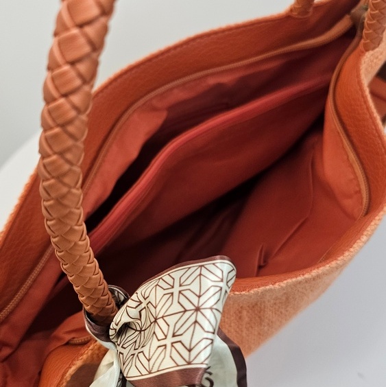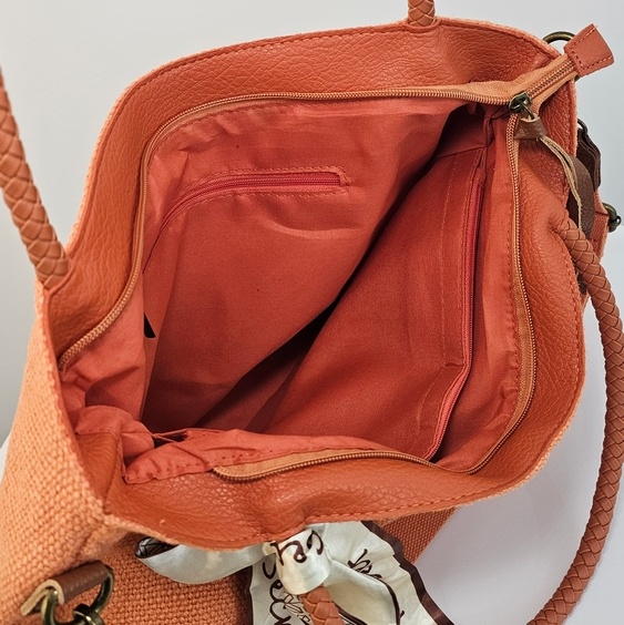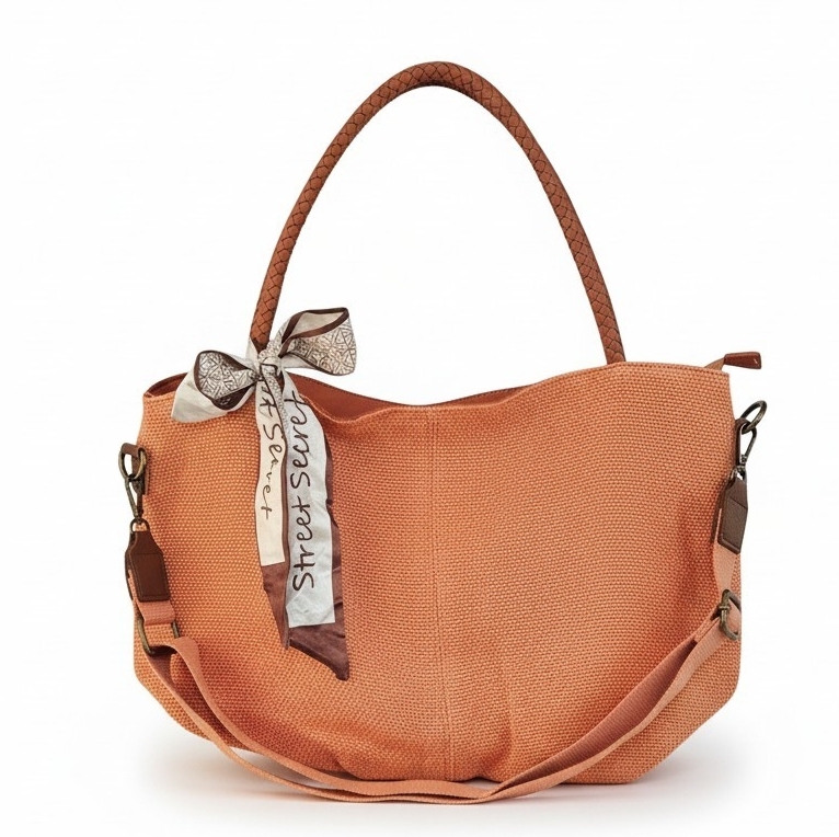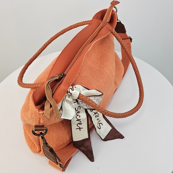 Duża torebka na ramię Daily Scarf pomarańczowa to fason dla kobiet stawiających na pojemność i porządek. Model wyróżnia się ozdobną apaszką przy rączce. Wewnątrz kieszeń na suwak, która dzieli komorę główną na dwie części. Dodatkowe mniejsze przegródki w podszewce pomieszczą telefon i klucze. Duża torebka na ramię Daily Scarf pomarańczowa ma płaskie dno oraz dopinany, długi pasek.