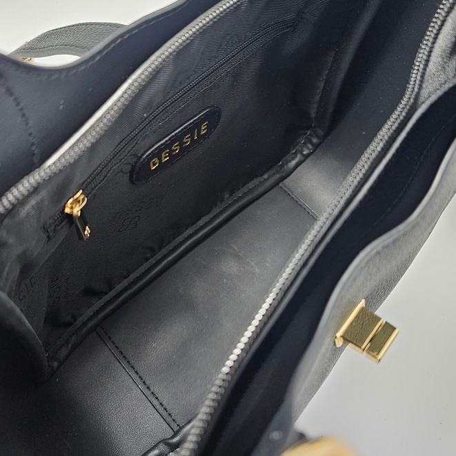 Wnętrze jest w pełni wyściełane i mieści portfel, telefon, klucze i najważniejsze codzienne rzeczy. Całość zapinana jest na trwały zamek, który zapewnia bezpieczeństwo zawartości. Kuferek świetnie sprawdzi się zarówno na co dzień, jak i do bardziej eleganckich stylizacji.
