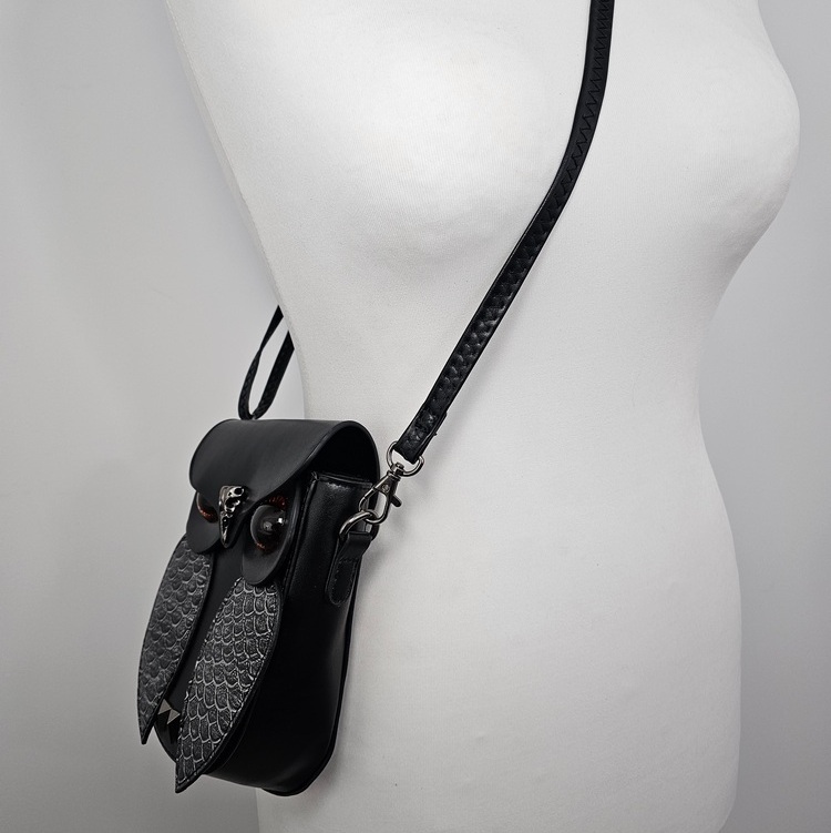 Mała torebka listonoszka Owl to uroczy, funkcjonalny model dla osób, które lubią dodatki z charakterem. Motyw sowy nadaje jej wyjątkowy, lekko magiczny akcent, a przy tym nie przytłacza — całość pozostaje elegancka i idealna do codziennych stylizacji. Torebka ma kompaktowy rozmiar, który mieści telefon, klucze, drobną kosmetyczkę i najpotrzebniejsze dodatki. Wygodny, regulowany pasek pozwala dopasować długość do własnych preferencji. W środku znajduje się praktyczna podszewka oraz zapinana kieszonka na małe drobiazgi.