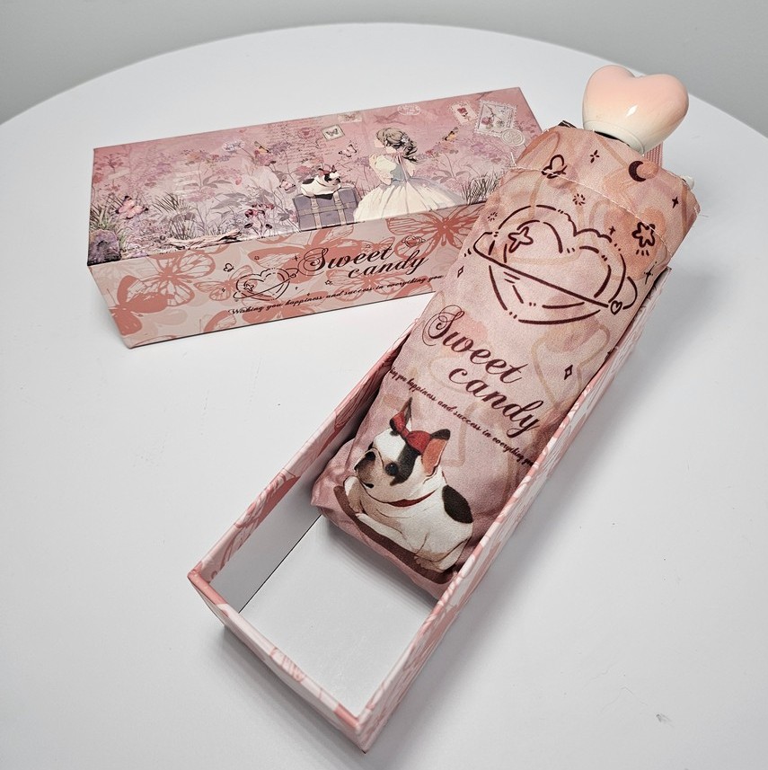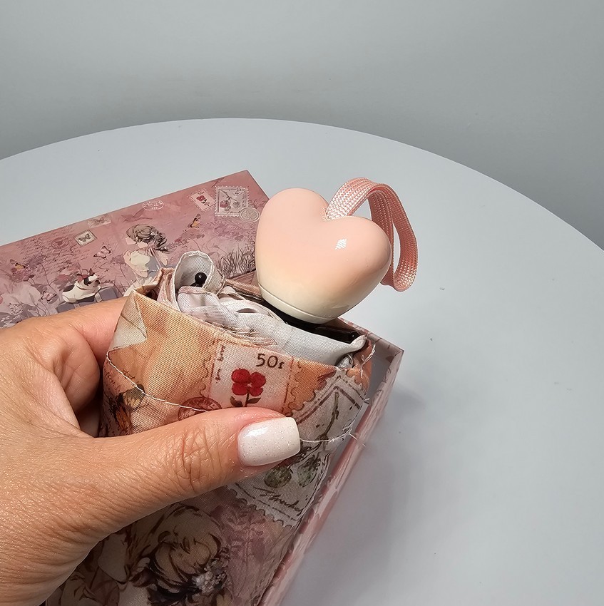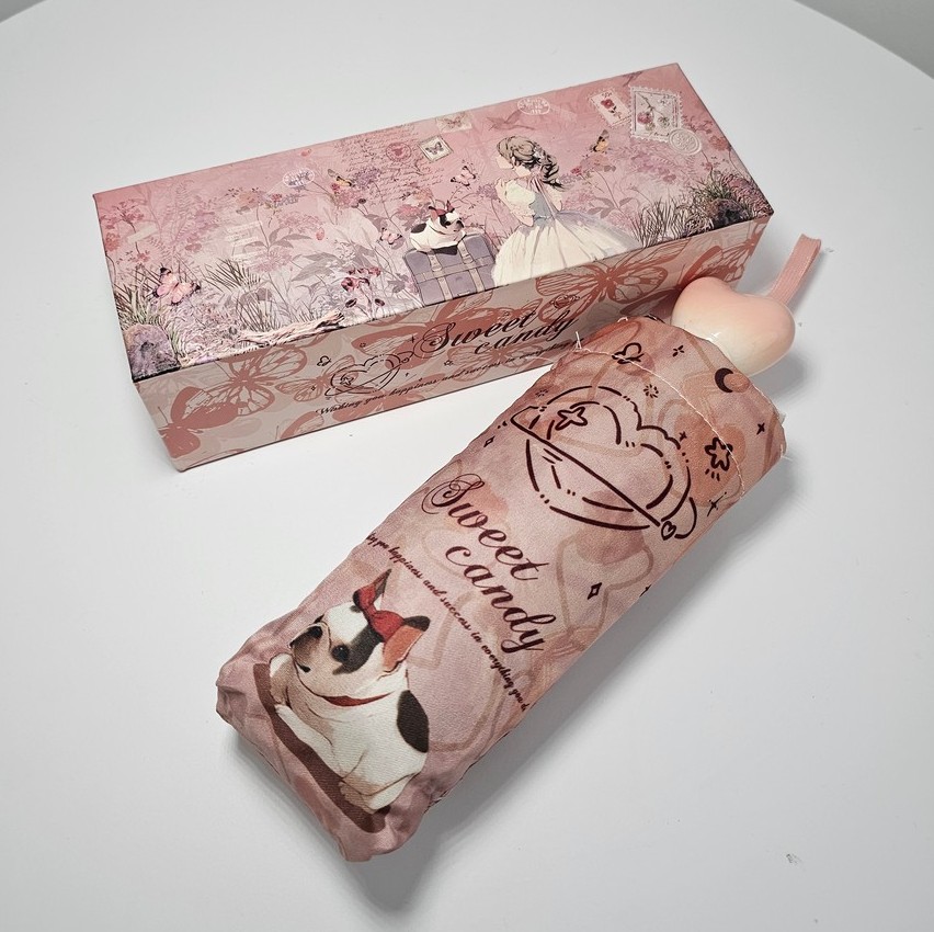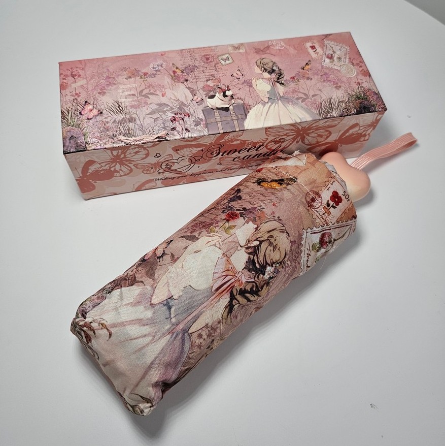 Parasolka jest zamknięta w ozdobnym pudełku.