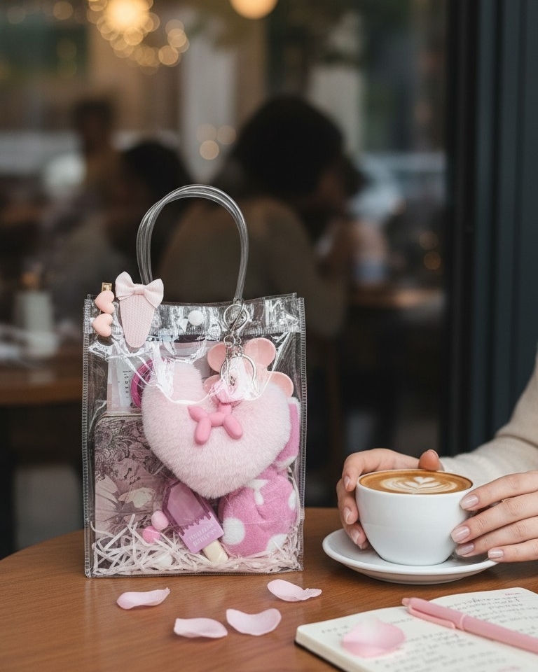 🎁 PepaGift Bag Pink Soul to starannie skomponowany zestaw upominkowy, który łączy praktyczne akcesoria z chwilą relaksu. Całość została zamknięta w transparentnej torebce z uchwytem, gotowej do wręczenia. Głównym elementem zestawu jest trzykomorowa portmonetka z klimatyczną grafiką w stylu retro, idealna na drobiazgi. W komplecie znajdziesz zestaw akcesoriów do włosów: elastyczną opaskę z kokardą, puszystą gumkę scrunchie oraz dużą klamrę. O pielęgnację zadba pakiet maseczek: 2 maski w płachcie oraz maska na usta. Zestaw uzupełnia peeling do ust w słoiczku, truskawkowy błyszczyk w kształcie loda oraz ozdobne breloki: puszyste serce i zawieszka. PepaGift Bag Pink Soul to estetyczny i gotowy set, który rozwiązuje problem pakowania prezentu.