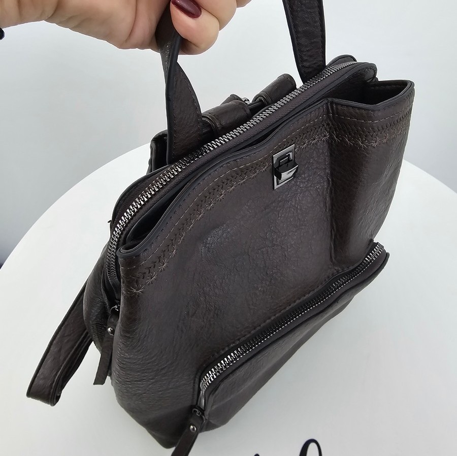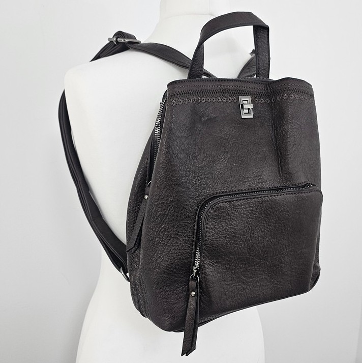 Plecak Urban Chic łączy wygodę i styl w jednym. Wykonany z wysokiej jakości skóry ekologicznej, charakteryzuje się miękką fakturą i klasycznym krojem, który pasuje do wielu stylizacji. Model posiada dwie pojemne komory zapinane na suwak, wewnątrz których znajdują się praktyczne kieszonki – otwarte oraz na zamek, idealne do przechowywania drobiazgów. Na froncie umieszczono dodatkową kieszeń na suwak, a z tyłu – kolejną, zabezpieczającą wartościowe rzeczy.