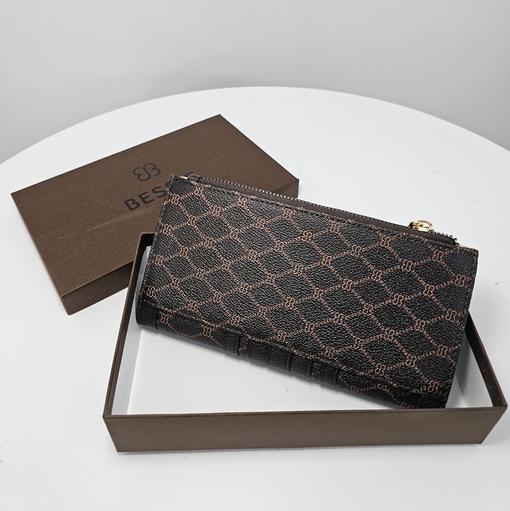 Portfel Covent XL to elegancki, pojemny model z efektownymi, metalicznymi wykończeniami i dekoracyjnym tłoczeniem. Wyróżnia się uporządkowanym wnętrzem, które ułatwia codzienne korzystanie – znajdziesz w nim liczne przegródki na karty i dokumenty, sekcję na banknoty oraz oddzielną kieszeń na monety zamykaną na zamek. Całość jest w pełni podszyta, dzięki czemu portfel zachowuje formę i prezentuje się wyjątkowo estetycznie. To praktyczna propozycja dla osób, które szukają dużego, funkcjonalnego portfela w eleganckim stylu.