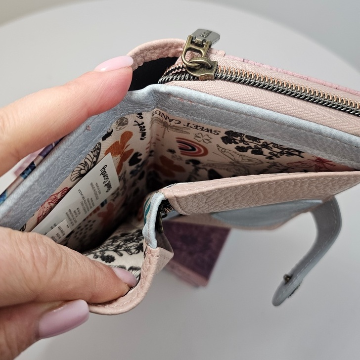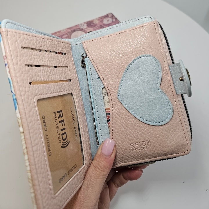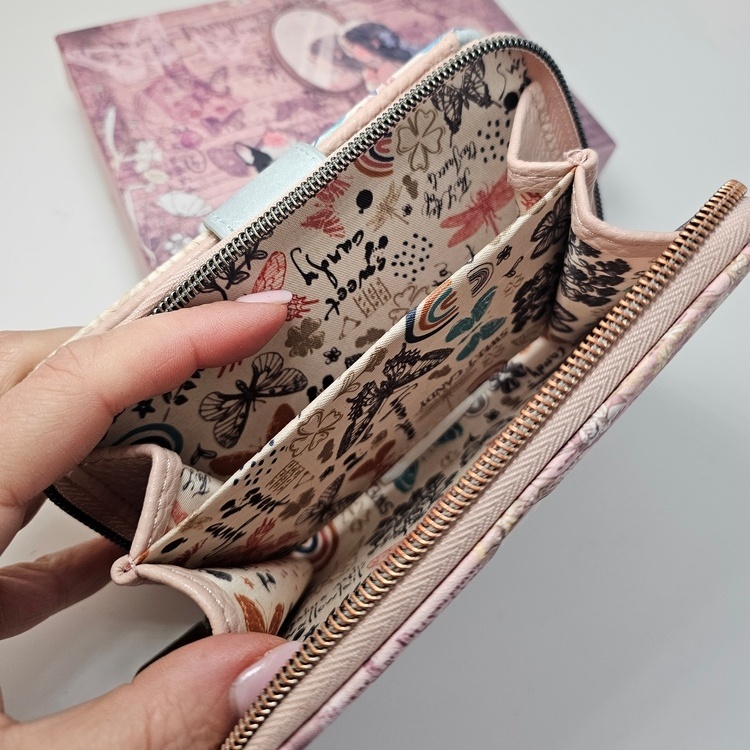 Ten portfel posiada oryginalną torebkę ochronną oraz pudełko z identycznym frontem jak portfel. Przechowasz w nim swoje skarby, jak biżuteria, drobne akcesoria do włosów czy naklejki.