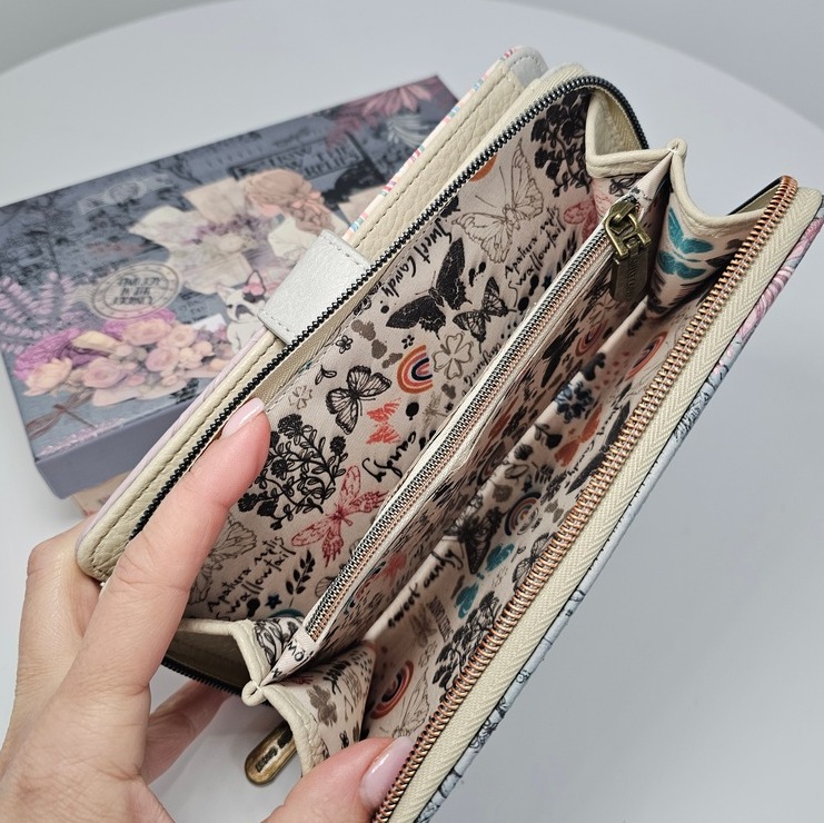 Ten portfel posiada oryginalną torebkę ochronną oraz pudełko z identycznym frontem jak portfel. Przechowasz w nim swoje skarby, jak biżuteria, drobne akcesoria do włosów czy naklejki.
