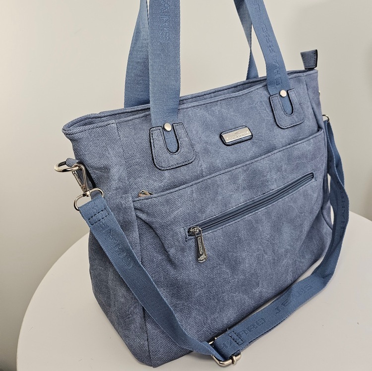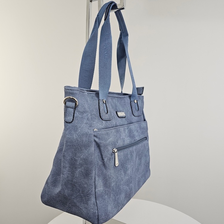 Torba na ramię z paskiem Everyday Move niebieska to funkcjonalny model zaprojektowany z myślą o codziennej wygodzie. Torebka posiada logowane rączki oraz dodatkowy, regulowany pasek, który można dopiąć w dowolnym momencie. Z przodu znajduje się podręczna kieszeń zamykana na suwak, idealna na drobiazgi, do których chcesz mieć szybki dostęp. Za nią ukryta jest kolejna kieszeń na suwak. Wnętrze z podszewką oferuje przemyślany system organizacji: środkowa przegroda na zamek dzieli główną komorę na dwie części, a dodatkowa boczna kieszonka pozwala bezpiecznie schować portfel lub klucze. Torba na ramię z paskiem Everyday Move niebieska zamykana jest od góry na solidny suwak, co zapewnia bezpieczeństwo zawartości podczas ruchu.