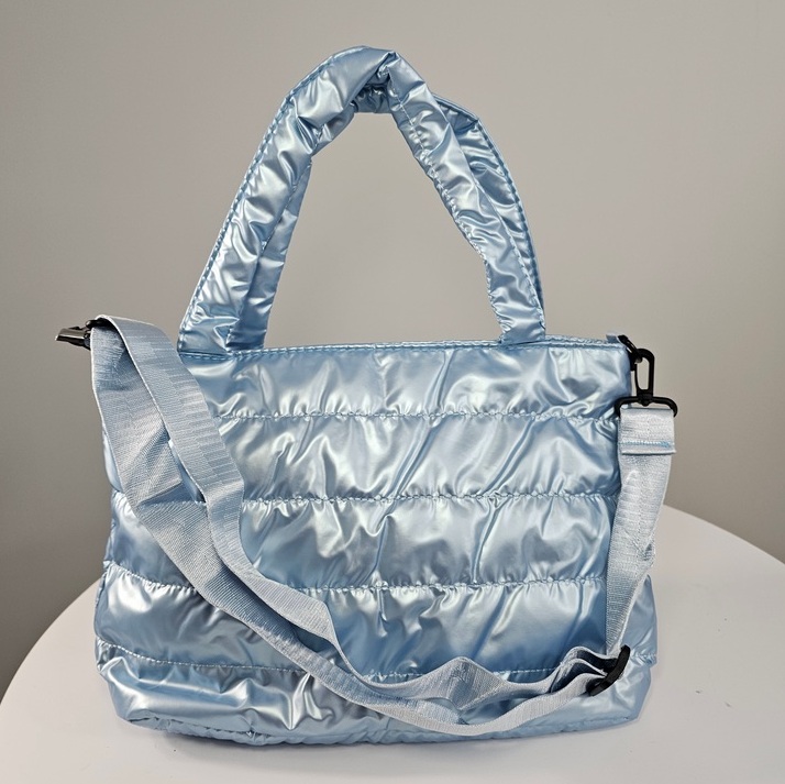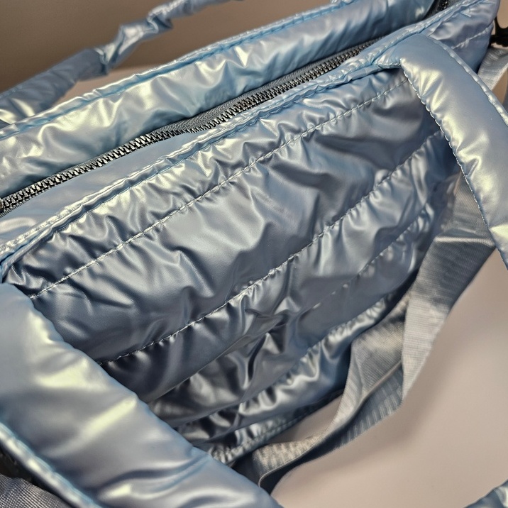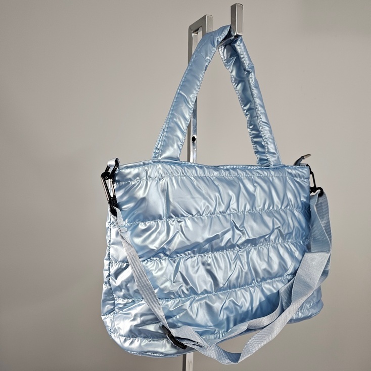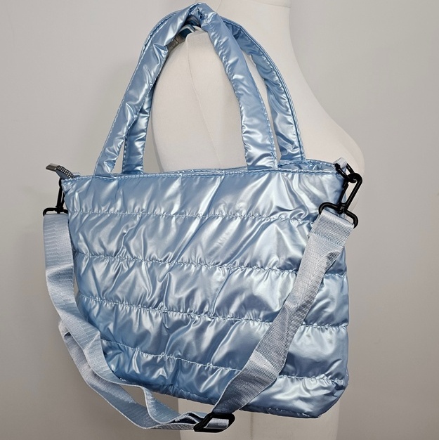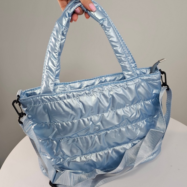 Torba pikowana Winter Mood Medium niebieska to lekka i niezwykle wygodna torba w miękkim, puchowym stylu, idealna na co dzień. Wyróżnia się połyskującym materiałem, nowoczesnym pikowaniem i różowym odcieniem, który dodaje stylizacji subtelnej świeżości. Model ma wygodne, szerokie uchwyty do noszenia w ręku oraz długi, regulowany pasek, który umożliwia noszenie torby na ramieniu lub przez ramię.