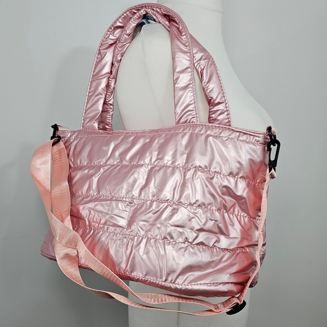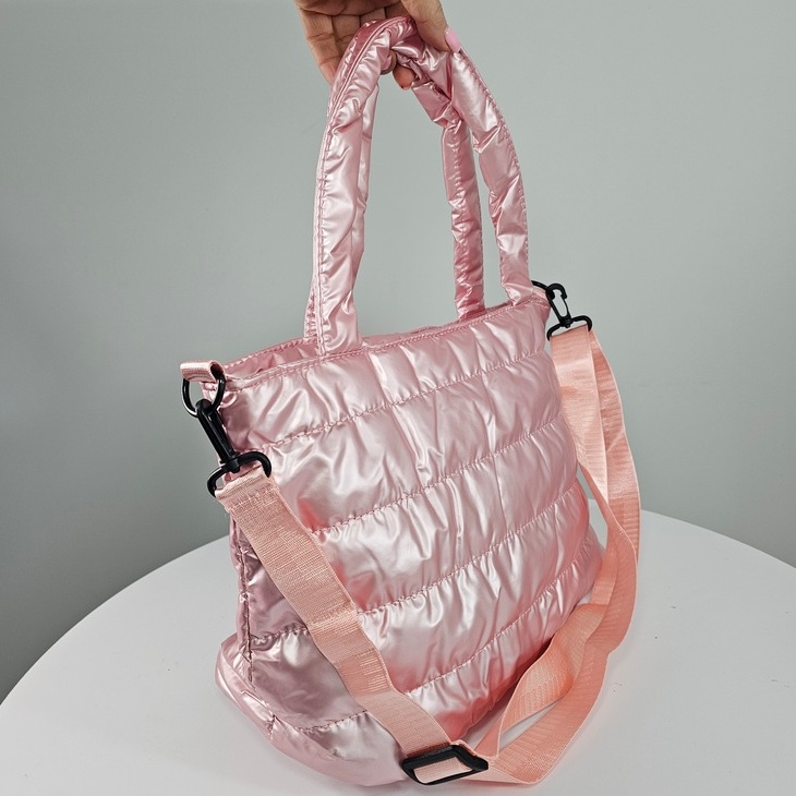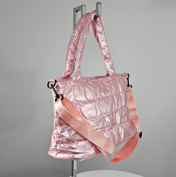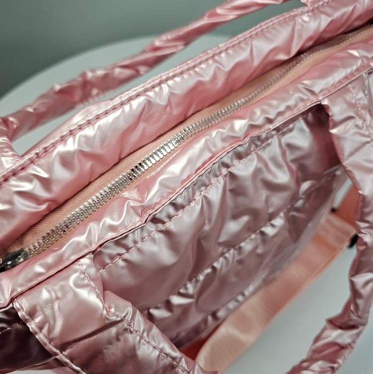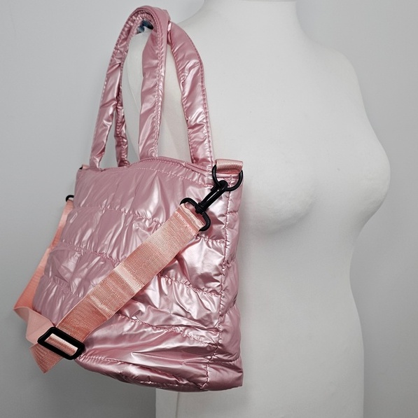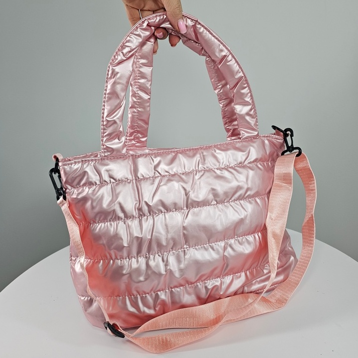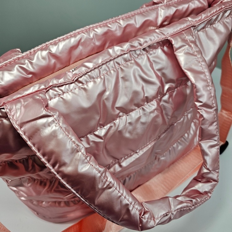 Torba pikowana Winter Mood Medium różowa to lekka i niezwykle wygodna torba w miękkim, puchowym stylu, idealna na co dzień. Wyróżnia się połyskującym materiałem, nowoczesnym pikowaniem i różowym odcieniem, który dodaje stylizacji subtelnej świeżości. Model ma wygodne, szerokie uchwyty do noszenia w ręku oraz długi, regulowany pasek, który umożliwia noszenie torby na ramieniu lub przez ramię.