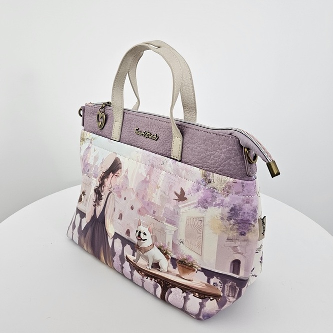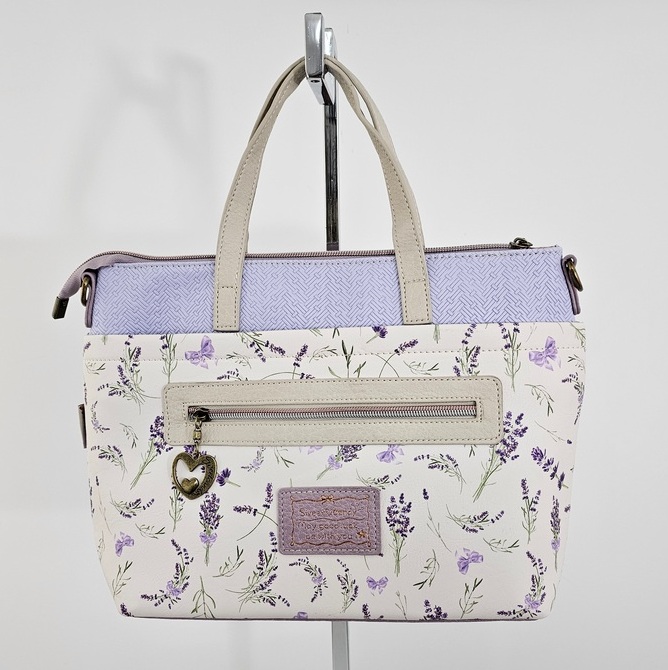 Torebka ma 1 komorę. W środku mięciutka kolorowa podszewka. Torebka posiada uszy do noszenia jej w ręce. Torebka posiada regulowany odpinany pasek. Z tyłu i z przodu kieszonka na zamek na całą długość torebki. Podstawa umożliwia ustawienie torebki na stole i sprawia, że jest bardzo pakowna. Z tyłu życzenia szczęścia May good luck be with you.