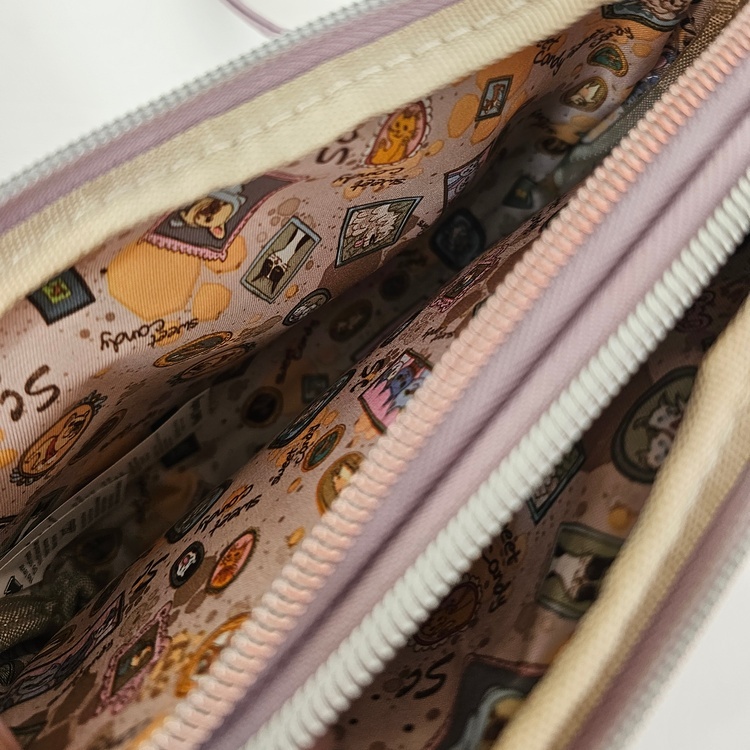 Torebka ma 2 komory. W środku mięciutka kolorowa podszewka. Torebka posiada regulowany pasek, można ją nosić na ramieniu i przez ramię. Od frontu i z tyłu kieszonka na zamek.