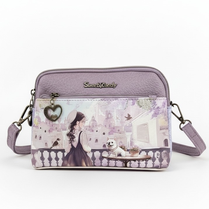 Torebka listonoszka Forever lawendowa hiszpańskiej marki Sweet Candy to propozycja dla romantyczek. Mała, pomieści duży portfel i drobiazgi, smartfon, klucze, kanapkę. Torebka zaprojektowana w Hiszpanii.