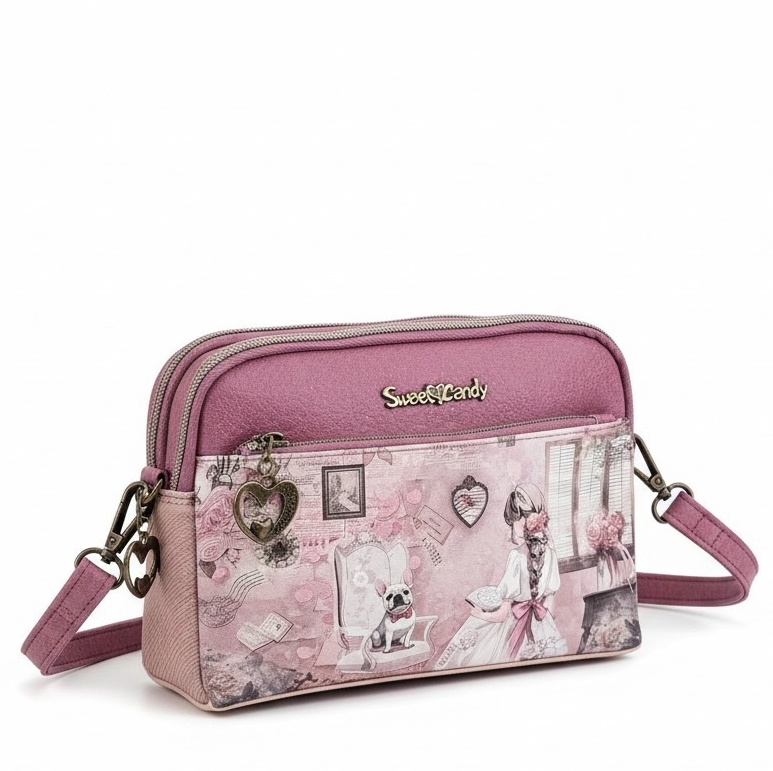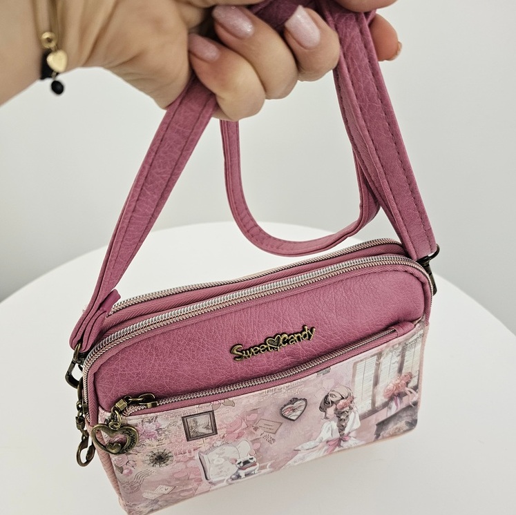 Torebka listonoszka Forever malinowa hiszpańskiej marki Sweet Candy to propozycja dla romantyczek. Mała, pomieści duży portfel i drobiazgi, smartfon, klucze, kanapkę.  Torebka zaprojektowana w Hiszpanii.