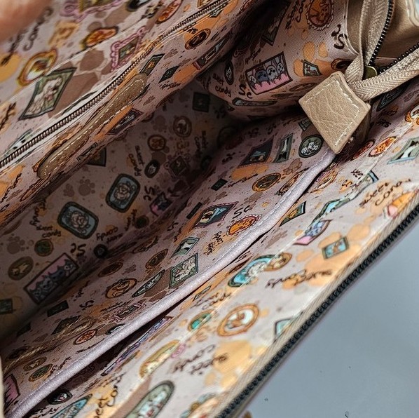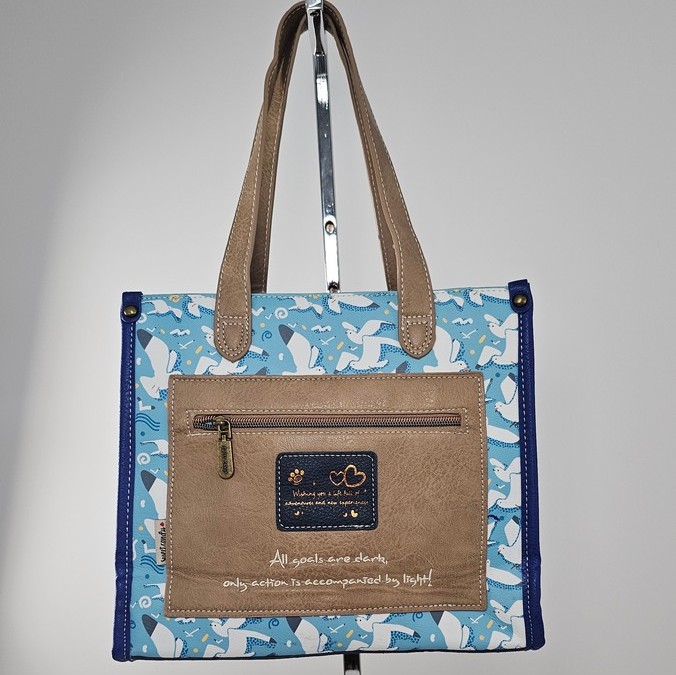 Torebka ma 1 komorę. W środku mięciutka kolorowa podszewka z jedną kieszonką na zamek i dwiema otwartymi. Szerokie dno umożliwia ustawienie torebki na stole lub na podłodze. Torebka posiada odpinany regulowany pasek i wydłużone uszy do ręki. Można ją nosić w ręce, na ramieniu i przez ramię.