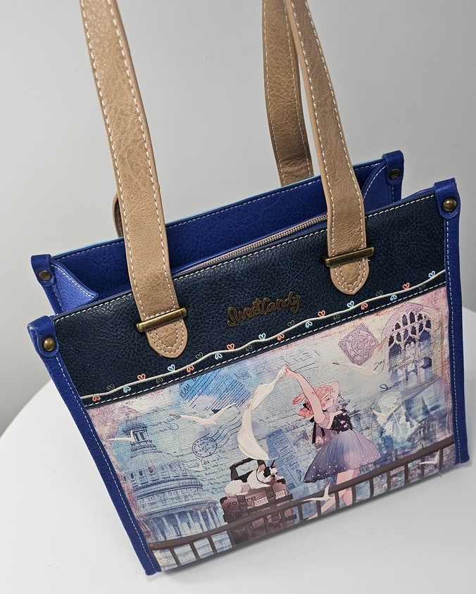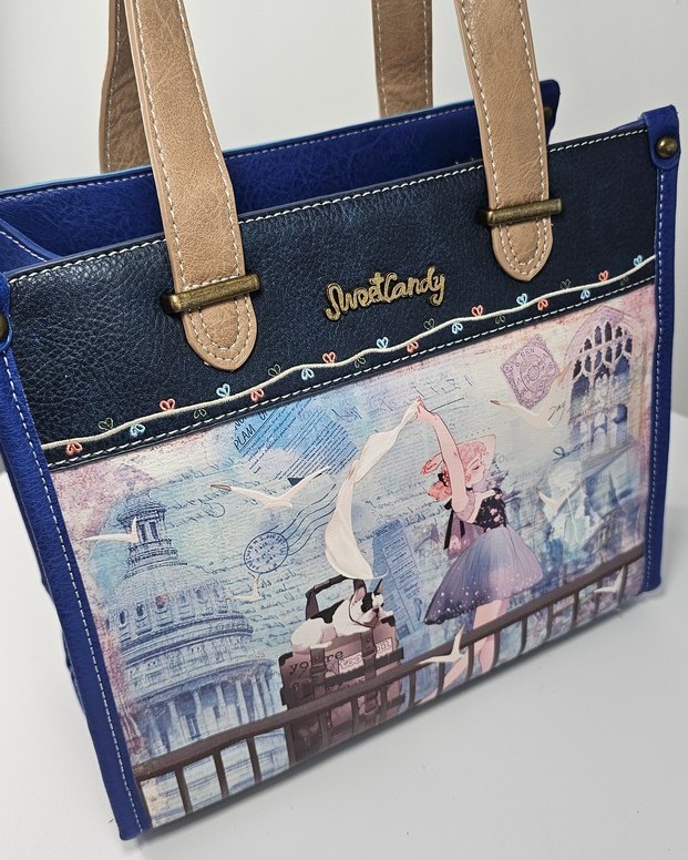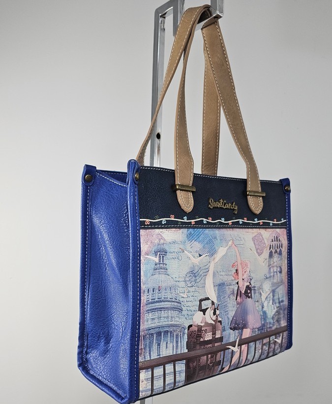 Torebka na ramię i do ręki A5 Sweet Dreams kobaltowa hiszpańskiej marki Sweet Candy to pojemna torebka, która pomieści format A5. Torebka zaprojektowana w Hiszpanii.