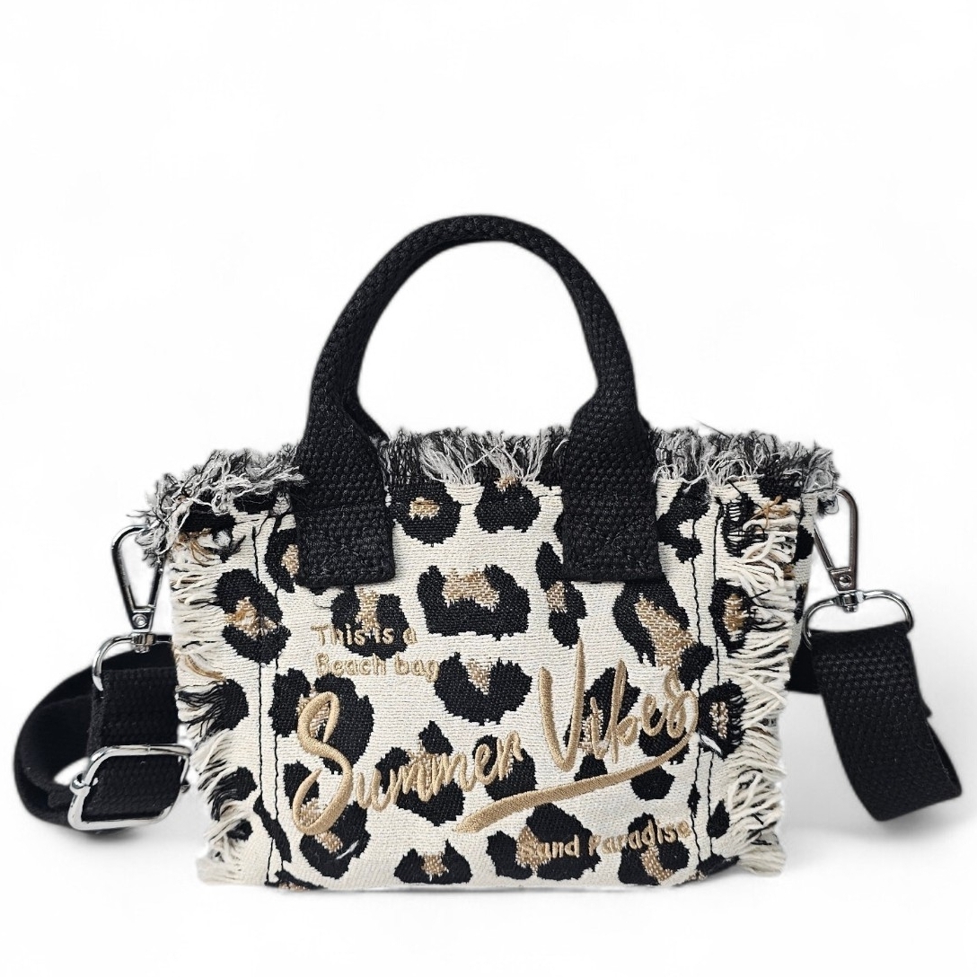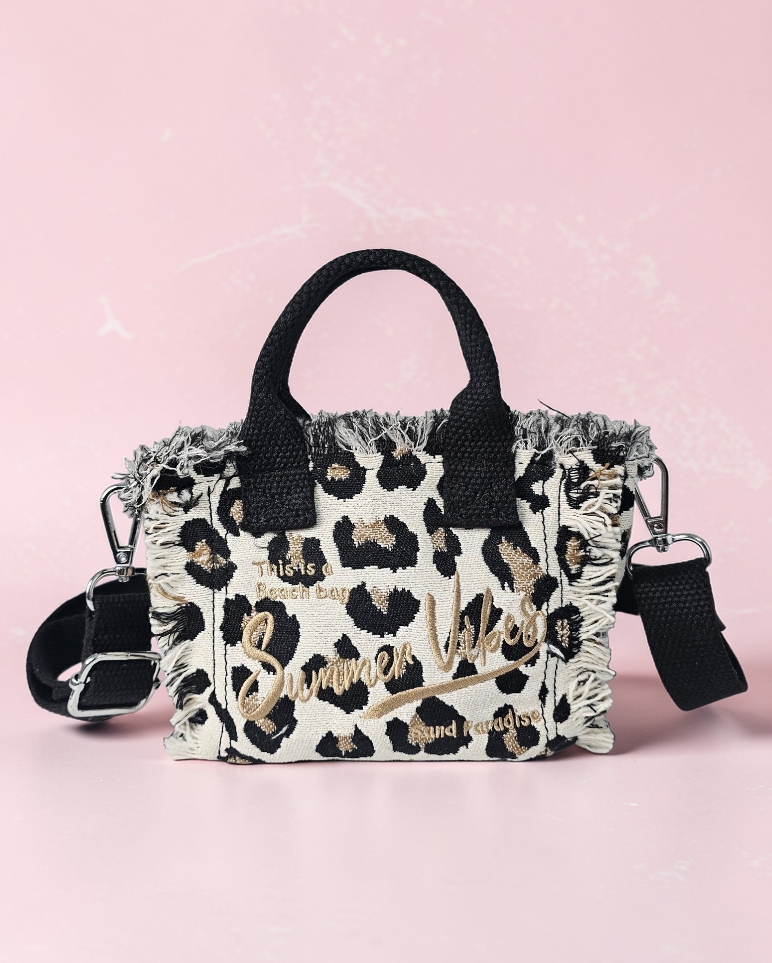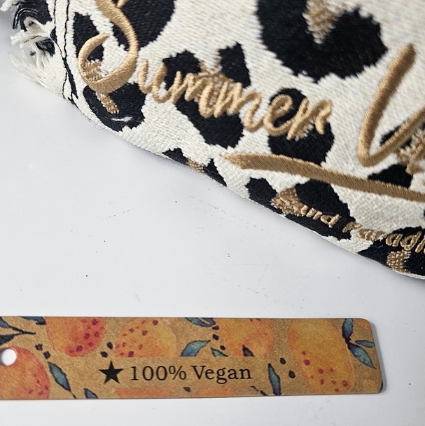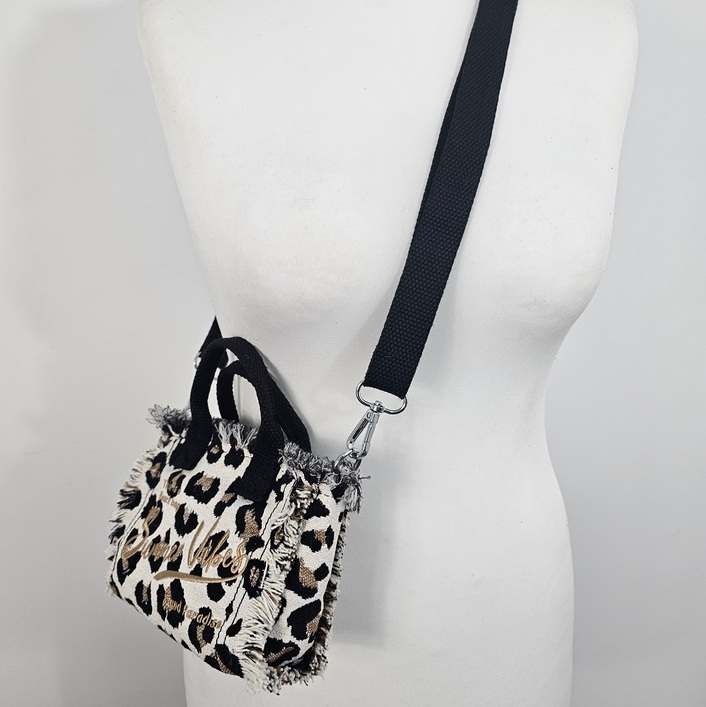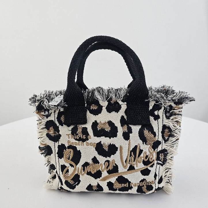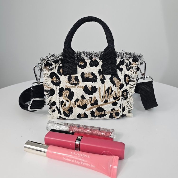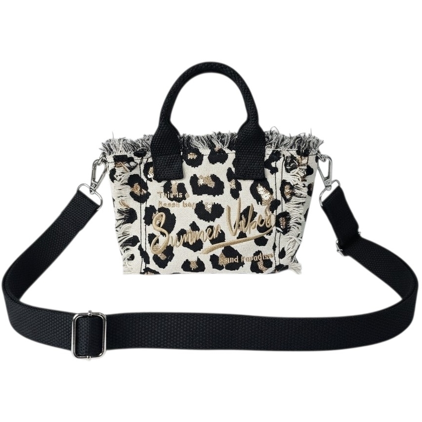 Torebka na ramię i do ręki Leopard Mini to kompaktowy model, który wprowadza wakacyjny luz do każdej stylizacji. Front zdobi czarny, haftowany napis, który idealnie współgra z naturalną strukturą materiału. Mimo swoich zgrabnych wymiarów, torebka posiada jedną główną komorę z wewnętrzną kieszenią na suwak – idealną na telefon lub dokumenty. Możesz ją nosić w dłoni za wygodne uchwyty lub skorzystać z dołączonego, długiego paska, który jest w pełni regulowany i odpinany. Torebka na ramię i do ręki Leopard Mini to stylowy i lekki wybór na letnie wyjścia, kiedy chcesz mieć przy sobie tylko to, co najważniejsze. W 100% wegańska.