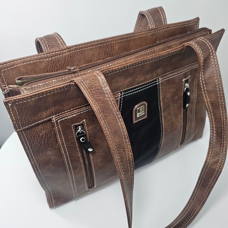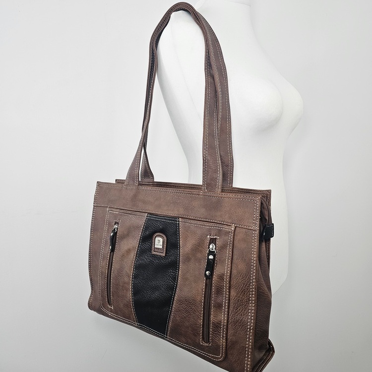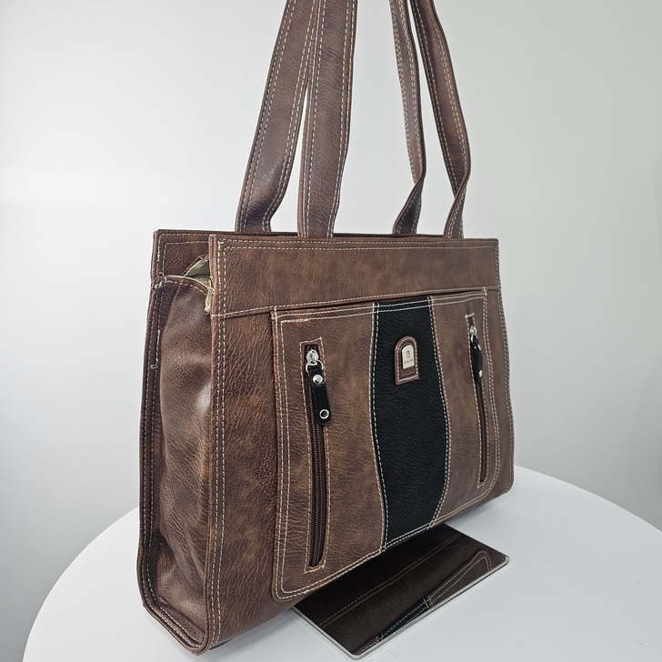Torebka na ramię Mocha Spirit to połączenie elegancji, wygody i praktycznego stylu. Wykonana z wysokiej jakości ekoskóry w głębokim, czekoladowym odcieniu z kontrastowym, czarnym panelem z przodu.