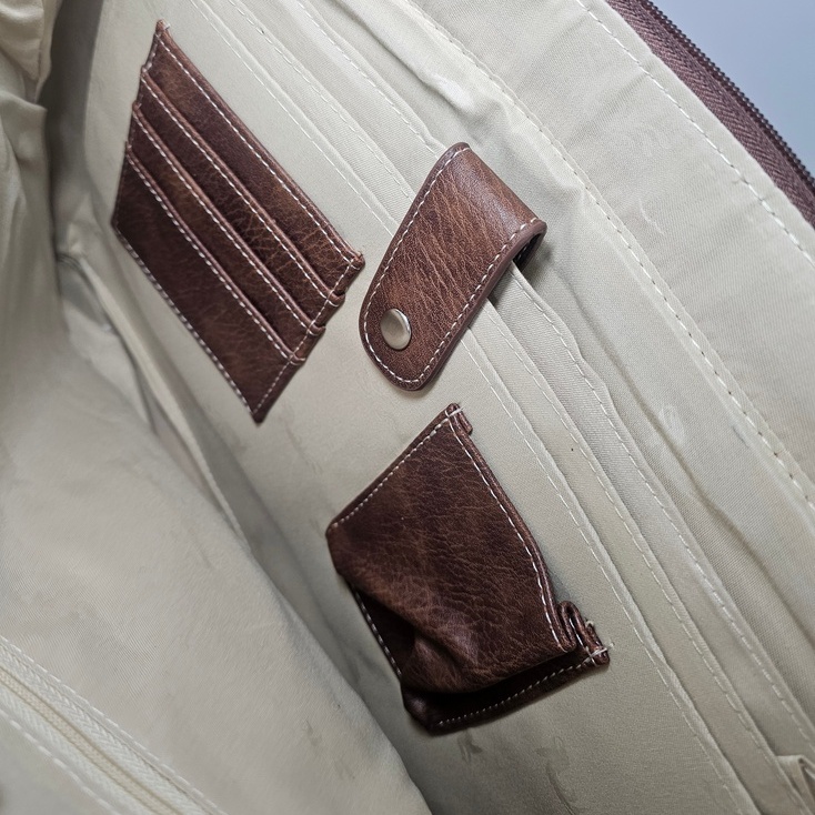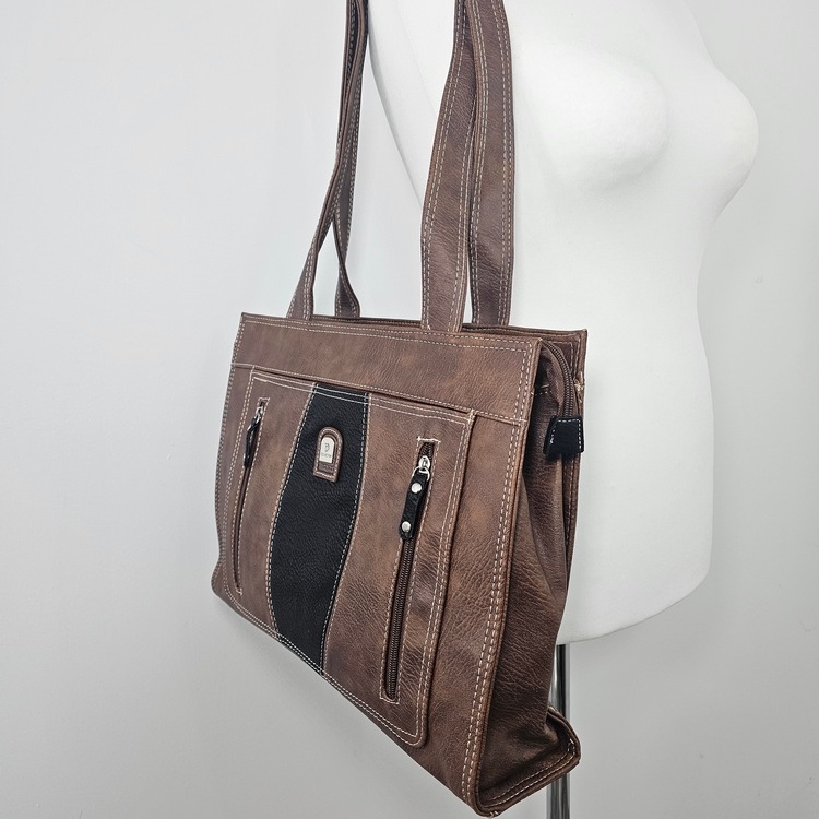 Model posiada dwie oddzielne komory zamykane na suwak, a także zewnętrzne kieszenie na zamek oraz przegródki wewnętrzne ułatwiające organizację drobiazgów. Wzmocnione uchwyty pozwalają nosić torebkę zarówno na ramieniu, jak i w dłoni.