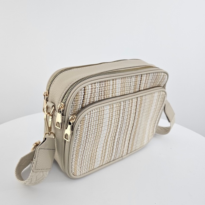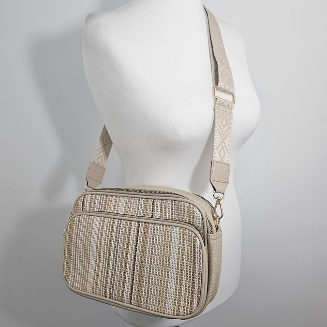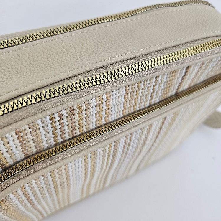 Torebka na ramię Ronne to połączenie funkcjonalności i wygody w eleganckiej formie. Front utkany z kolorowych nitek. Model posiada dwie oddzielne komory zamykane na suwak, dzięki czemu z łatwością utrzymasz porządek i podzielisz swoje rzeczy. Wewnątrz znajduje się praktyczna kieszonka na drobiazgi, a z przodu i z tyłu – dodatkowe kieszenie zewnętrzne na zamek, idealne na telefon, dokumenty czy klucze.