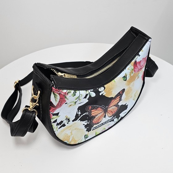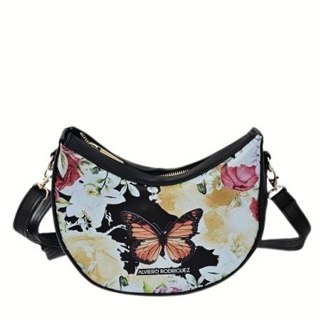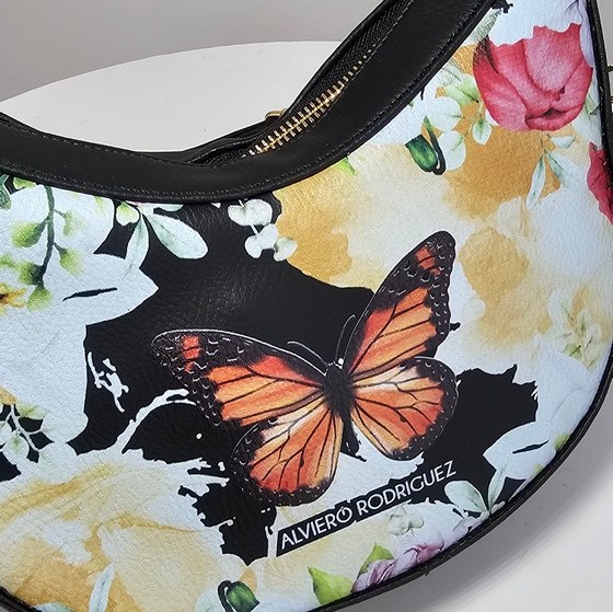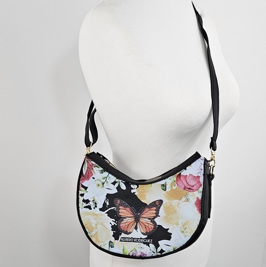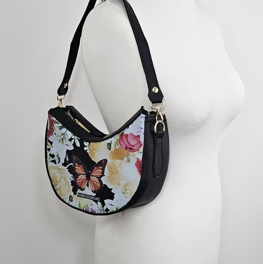 Torebka na ramię Sorrento Bella to połączenie włoskiego stylu i wyjątkowego designu. Jej charakterystyczny kształt półksiężyca wyróżnia się lekkością i nowoczesnością, a kolorowy nadruk z motylem i kwiatami dodaje kobiecego uroku.