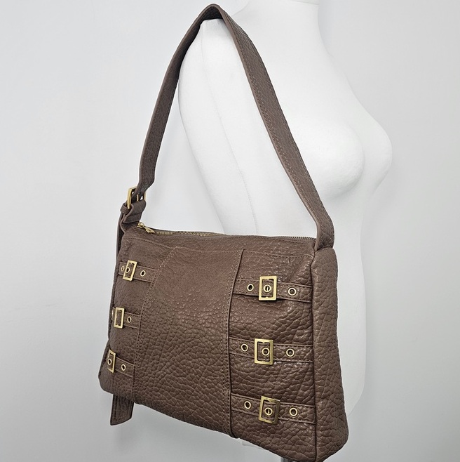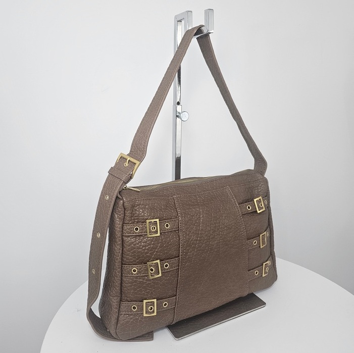 Torebka na ramię Urban Buckle to połączenie nowoczesnego stylu i funkcjonalności. Wykonana z wysokiej jakości eko-skóry o wyraźnej, mięsistej fakturze, zachwyca solidnym wykonaniem i designerskimi detalami w postaci metalowych klamer.