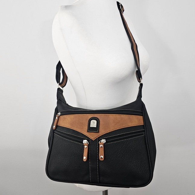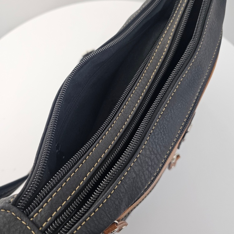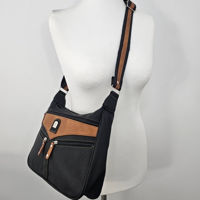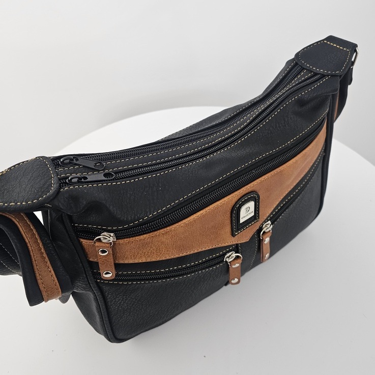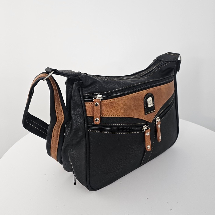 Torebka na ramię Urban Pocket to praktyczny model dla osób, które potrzebują świetnej organizacji na co dzień. Ma trzy osobne komory na suwak, dzięki czemu łatwo uporządkujesz dokumenty, klucze, telefon i drobiazgi. Z przodu znajdują się dodatkowe kieszenie zapinane na zamek, idealne na rzeczy wymagające szybkiego dostępu. Model jest lekki, wygodny w noszeniu i wyposażony w regulowany pasek, który dopasujesz do swojej sylwetki. Wewnątrz torebki znajdziesz kieszeń na zamek oraz przegrodę na drobne akcesoria. To funkcjonalna, codzienna torebka, która sprawdzi się zarówno do pracy, jak i do luźniejszych stylizacji.