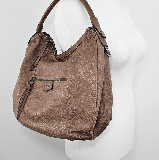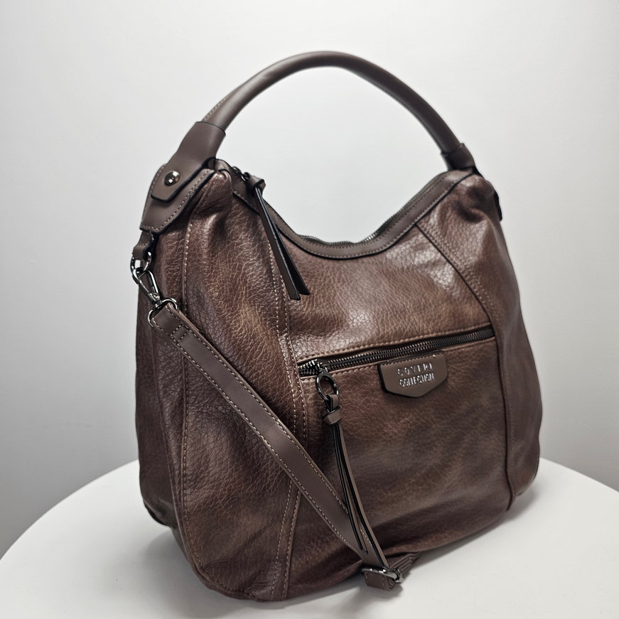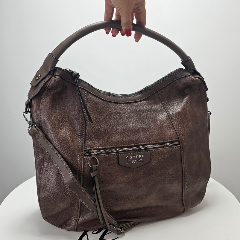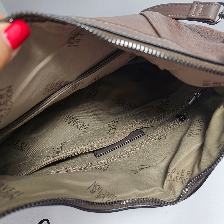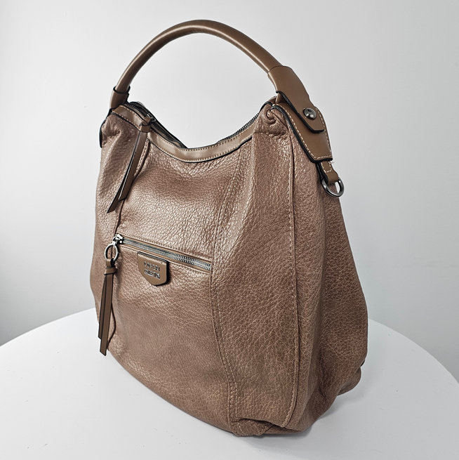 Torebka na ramię Urban Soft Coveri Collection to klasyczny model o nowoczesnym charakterze, stworzony z miękkiej skóry ekologicznej. Jej przestronne wnętrze pomieści format A4, dlatego świetnie sprawdzi się w pracy, na uczelni czy podczas codziennych zajęć. W środku znajduje się 1 duża komora, a dodatkowe kieszenie pozwalają utrzymać porządek i łatwo znaleźć drobiazgi. Z przodu i z tyłu umieszczono praktyczne kieszonki na suwak, idealne na klucze lub bilety. Solidny uchwyt umożliwia noszenie torebki na ramieniu, a dołączony pasek z regulacją pozwala dopasować ją do sylwetki. Zaokrąglony kształt nadaje całości subtelności, a uniwersalny design pasuje do wielu codziennych stylizacji.