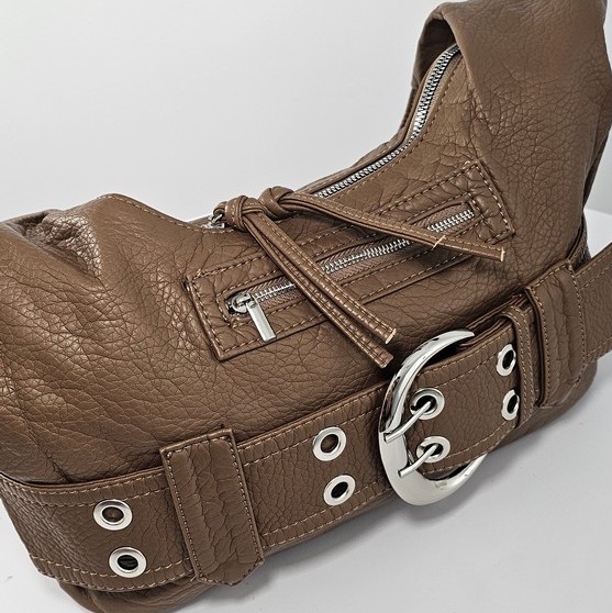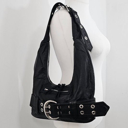 Torebka na ramię Wow Belt to niebanalny dodatek, który łączy w sobie styl biker z nutą miejskiej elegancji. Wyróżnia ją szeroki, dekoracyjny pasek z dużą, metalową klamrą, który od razu przyciąga spojrzenia i nadaje całości efekt „wow”. Model zapinany jest na dwa suwaki, a w środku mieści się wyłożona podszewką przestrzeń z jedną komorą, idealną na codzienne akcesoria. Dodatkowy przedni suwak pozwala szybko schować drobiazgi pod ręką. Torebka pomieści format A5, duży portfel, butelkę wody 0,5 l.