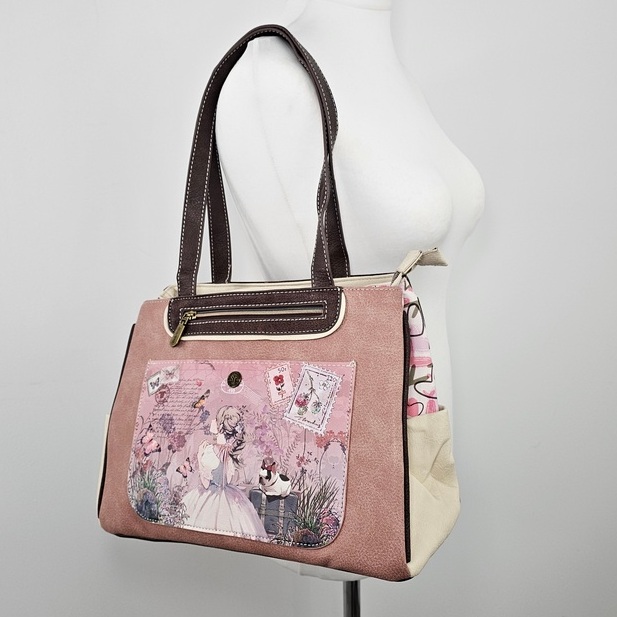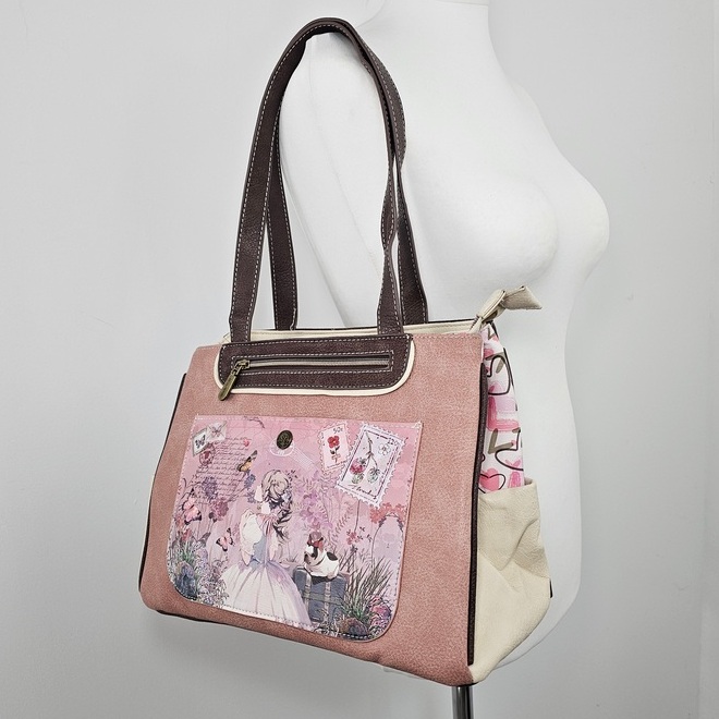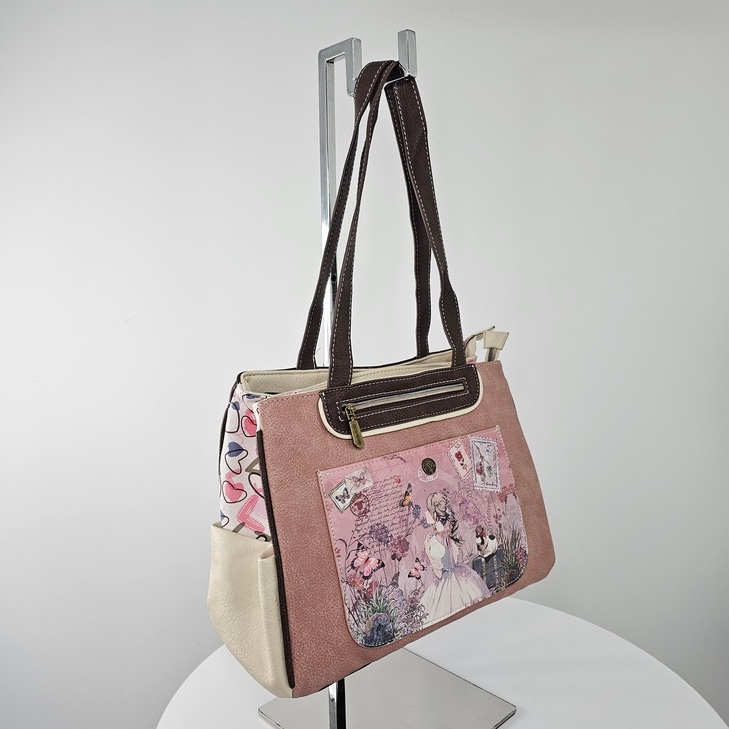 Torebka na ramię z paskiem Sweet Dreams różowa to praktyczny, a zarazem wyjątkowo stylowy model o większej pojemności. Ma dwie główne komory zamykane na suwak, kieszenie w środku oraz zewnętrzne – z przodu, z tyłu i po bokach. Wydłużone uszy umożliwiają noszenie jej na ramieniu, a regulowany, odpinany pasek dodaje jej funkcjonalności.