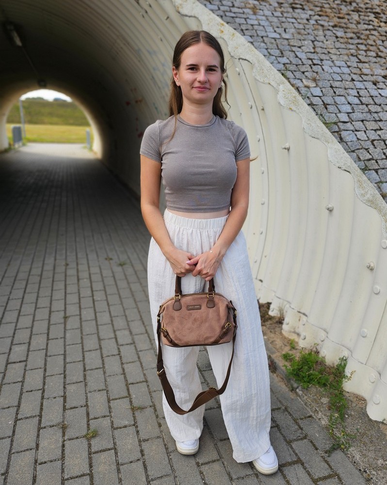 Torebka Velvet Touch to połączenie klasy i nowoczesnego stylu. Wykonana z materiału z efektem zamszu, prezentuje się niezwykle elegancko i kobieco. Model wyróżnia się solidnym wykończeniem, złotymi detalami i subtelnym logotypem marki. Torebka oferuje praktyczne wnętrze z kieszonką zapinaną na suwak oraz dodatkowymi przegrodami, co pozwala utrzymać porządek i mieć najważniejsze drobiazgi zawsze pod ręką. Dzięki wygodnym rączkom oraz odpinanemu paskowi na ramię możesz nosić ją na dwa sposoby – w dłoni lub przewieszoną przez ramię. Torebka Velvet Touch sprawdzi się zarówno w pracy, jak i podczas spotkań towarzyskich, podkreślając Twój unikalny styl.