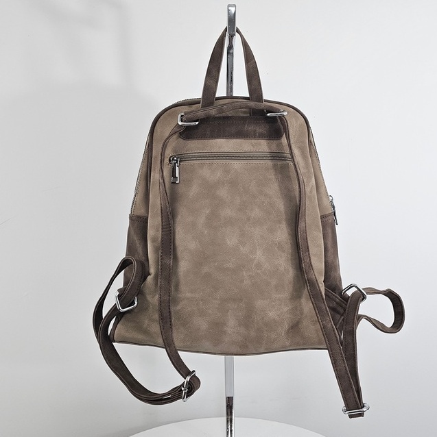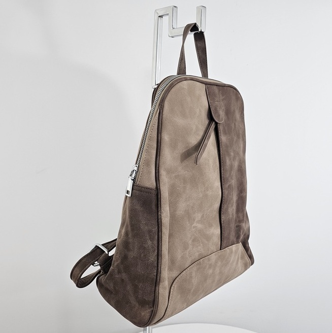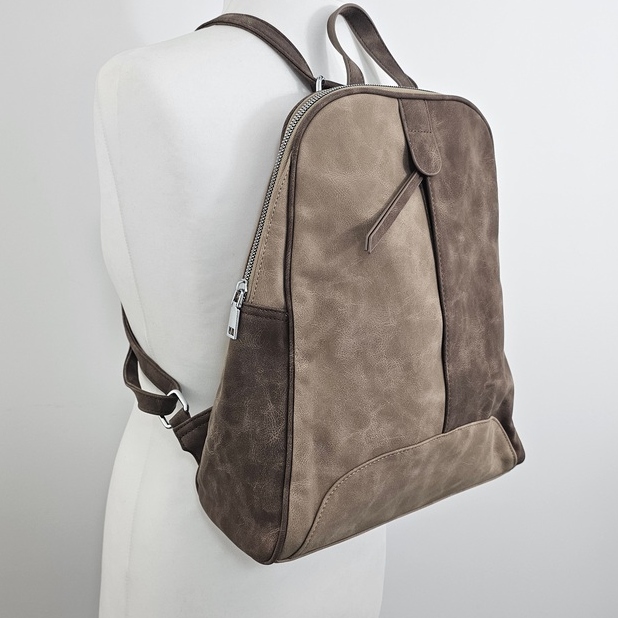 Torebko-plecak Voyager Duo przyciąga uwagę dwukolorowym panelem przednim, wykonanym z materiału o strukturze nubuku. Pionowy podział kolorystyczny skrywa funkcjonalną, głęboką kieszeń na suwak, która zajmuje połowę frontu i umożliwia szybki dostęp do najpotrzebniejszych rzeczy. Główna komora plecaka zamykana jest na zamek błyskawiczny i posiada jasne wnętrze, co znacznie ułatwia odnajdywanie przedmiotów. W środku znajduje się praktyczny podział na zamykaną kieszonkę oraz dwie otwarte przegródki. Bezpieczeństwo cennych przedmiotów zapewnia dodatkowa kieszeń na plecach, również zapinana na suwak. Regulowane szelki oraz solidny uchwyt górny pozwalają na swobodną zmianę sposobu noszenia, dzięki czemu produkt pełni funkcję zarówno pojemnej torby, jak i wygodnego plecaka.