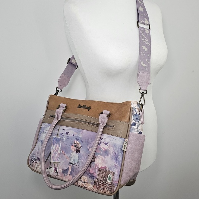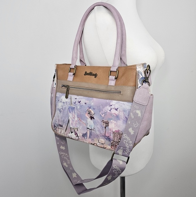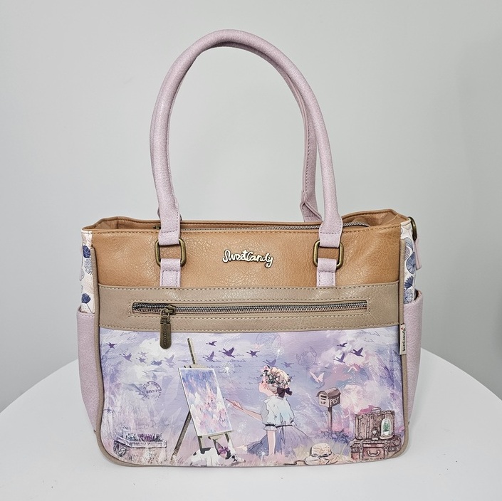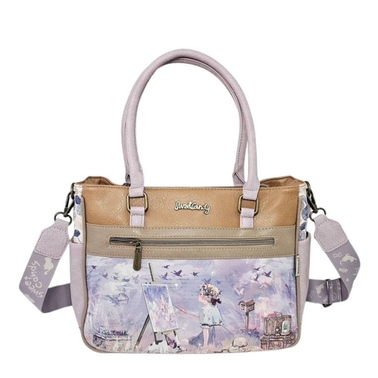 Większa torebka do ręki i na ramię Sweet Dreams liliowa z kolekcji Sweet Candy to stylowe połączenie funkcjonalności i wyjątkowego designu. Wykonana z materiału syntetycznego, jest lekka, trwała i przyjemna w użytkowaniu.