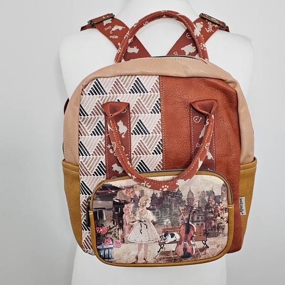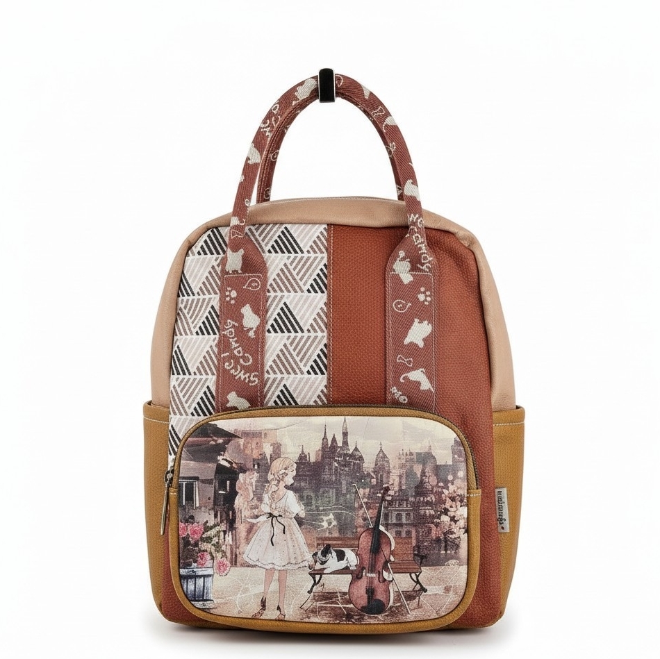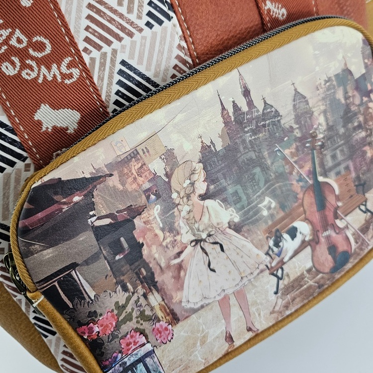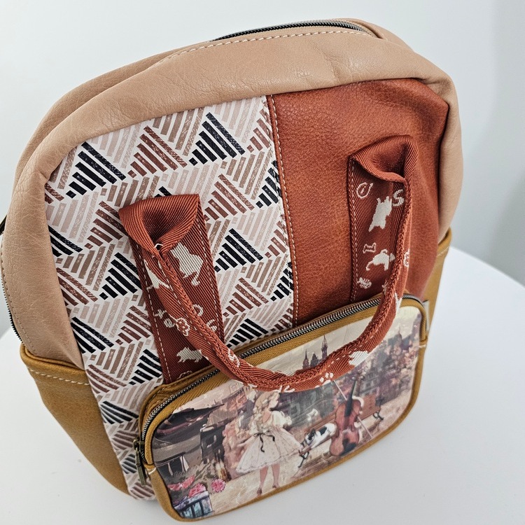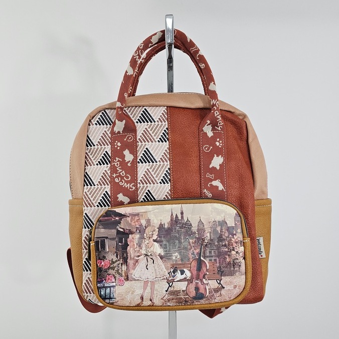 Większy plecak Sweet Dreams karmelowy hiszpańskiej marki Sweet Candy to propozycja dla fanek kolorowych printów. Pojemny, pomieści format A5++. Plecak zaprojektowany w Hiszpanii.